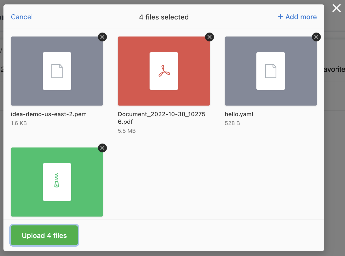 <figure><img src="https://207104517-files.gitbook.io/~/files/v0/b/gitbook-x-prod.appspot.com/o/spaces%2FUpQy5OG2gMMl16kYYDhT%2Fuploads%2FMBpCn6nobQUcxymvCS3S%2FScreen%20Shot%202022-11-01%20at%209.07.37%20AM.png?alt=media&#x26;token=c460bcfe-3d24-47b2-b0e4-77b47a03d0b4" alt=""><figcaption><p>Upload files</p></figcaption></figure>